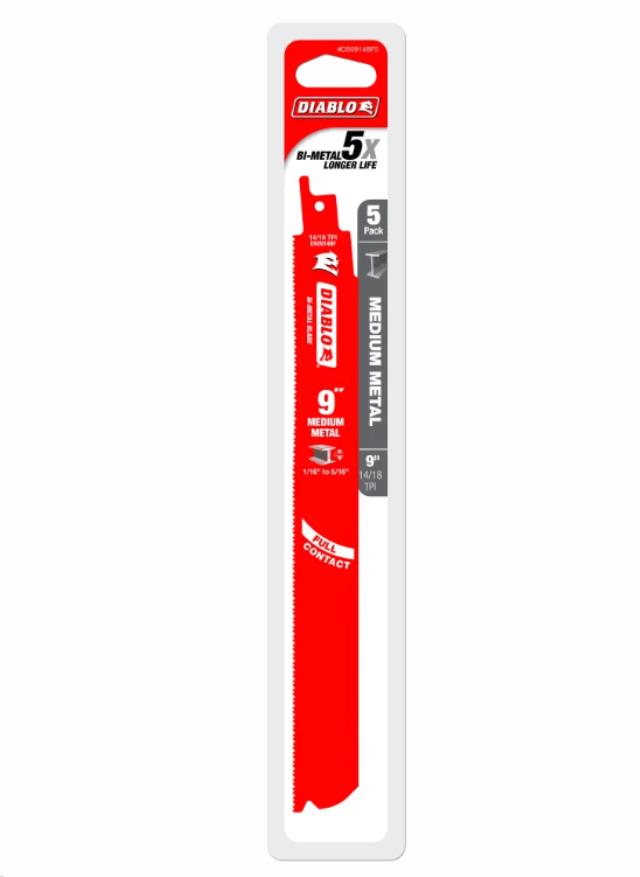 Diablo 9" 14/18 TPI Bi-Metal Recip 5pk